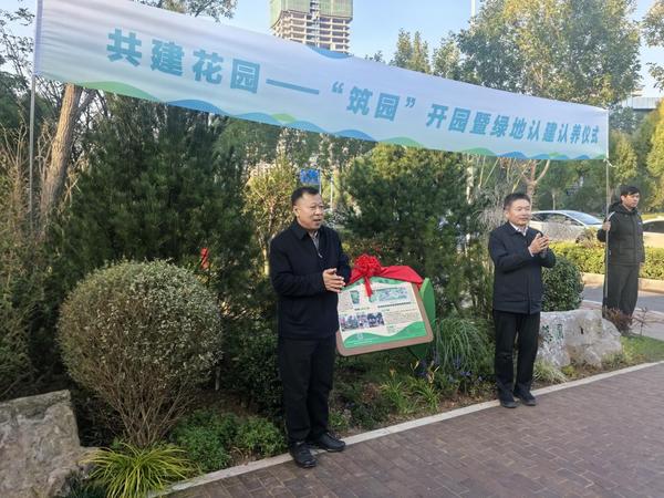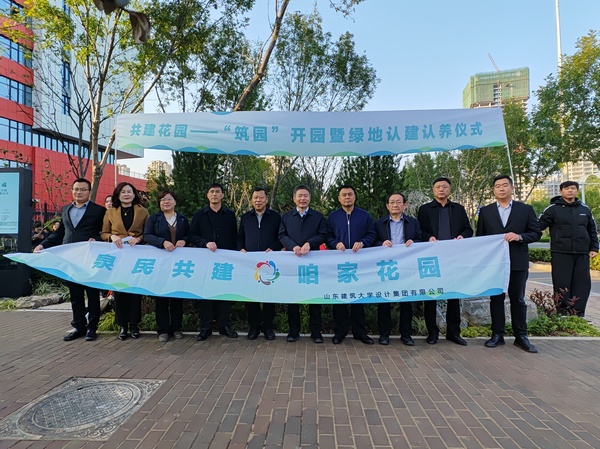 寒露凝秋色,园景焕新颜。10 月 21 日共建花园 ——“筑园”开园暨绿地认建认养仪式,在历城区凤鸣路山东建筑大学设计集团有限公司东入口成功举办。济南市园林和林业绿化局党组成员、副局长苏先春,济南市园林和林业绿化局绿化监督处处长王吉栋,历城区园林和林业绿化局党组书记、局长宋可朴,山东省园林绿化行业协会会长、山东建筑大学设计集团有限公司董事长、总经理李端杰,港沟街道平安法治和信访办公室副主任刘强以及各共建单位代表齐聚一堂,共同见证开园时刻。 此次活动以“城市绿链,生态自然” 为主题,通过“共商共建 共治共享”的方式,从节约型园林角度出发,坚持以人民为中心,开展百姓园林实践,共享一处创新、舒适、美丽、韧性、生态的城市花园,共同营造和谐的可持续性景观。